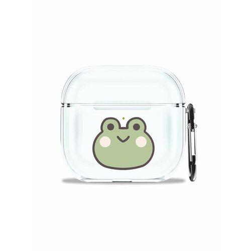 Силиконовый чехол DesignOnCase для беспроводных наушников AirPods 4, с карабином, глянцевый, Лягушка