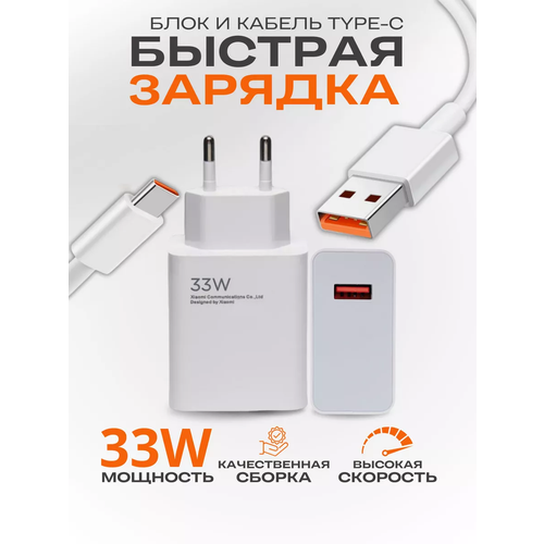 Быстрая зарядка для телефона Xiaomi 33w + кабель Type-C в комплекте