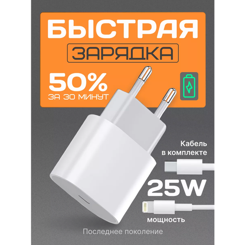Сетевое зарядное устройство 25W / Быстрая зарядка для IPhone 15 / Белый