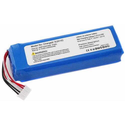 Аккумулятор GSP1029102 для портативной акустики JBL Charge 2+ (обратная полярность) 3.7V 6000mAh