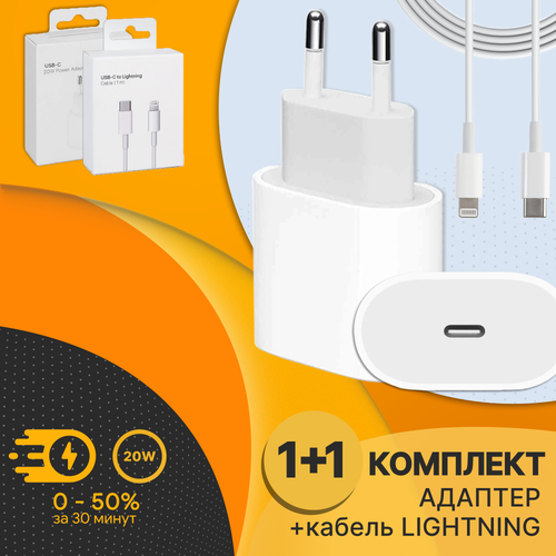 Быстрая зарядка (20W)Type C для айфона+ кабель USB-C - Lightning/Зарядное устройство для телефона (20Вт)/ Зарядка (20W)для Apple iPhone/ iPad/ AirPods