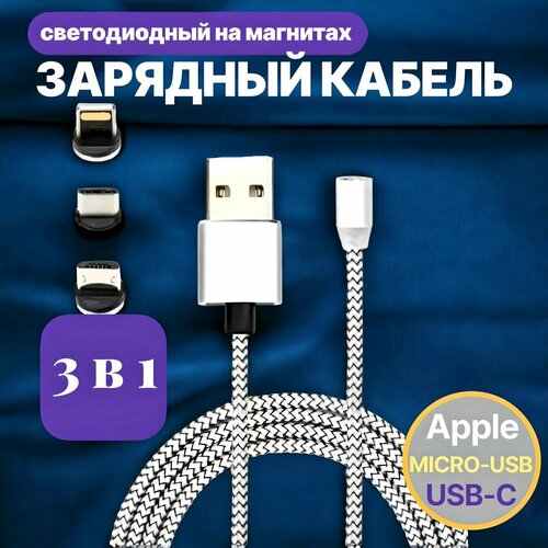 Магнитный зарядный кабель VVO USB Type-C, Lightning, MicroUSB, 1 м