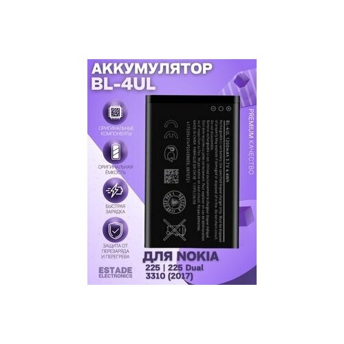 Аккумулятор BL-4UL - это надежный и долговечный источник питания для телефонов Nokia 220, 225, 230 и 3310 2017 года выпуска. Он имеет емкость 1200 мАч и выходное напряжение 3,7 В, что обеспечивает стабильную работу вашего телефона.
