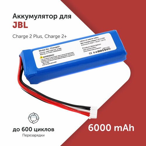 Аккумулятор GSP1029102 для портативной акустики JBL Charge 2+ (обратная полярность) 3.7V 6000mAh