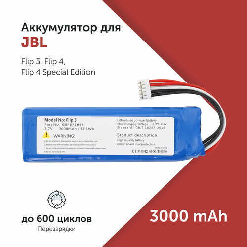Аккумулятор GSP872693 01 для bluetooth колонок JBL Flip 4 3.7 В 3000 мА·ч
