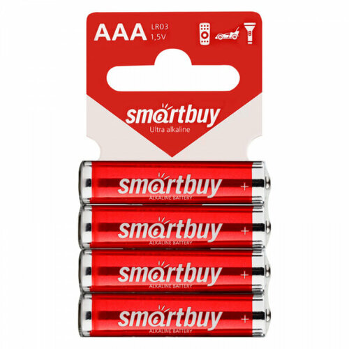 Батарейки ААА пальчиковые Smartbuy, алкалиновая ААА/LR03/4SB, 4шт