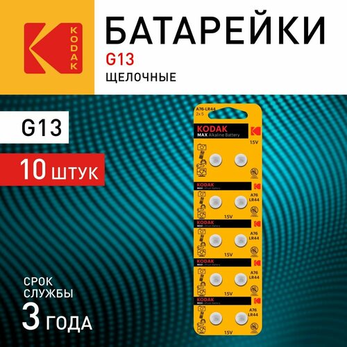 Батарейки Kodak AG13 (357) LR1154, LR44 KAG13-10 MAX Button Cell (100/1000/70000) 10 шт