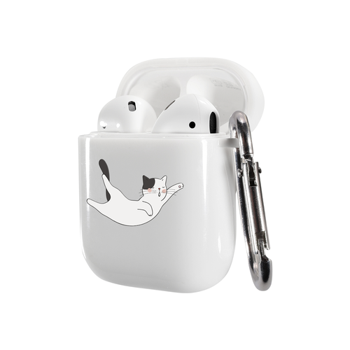 Силиконовый чехол Mcover для беспроводных наушников AirPods 1/2, с карабином, глянцевый, Спящий котик