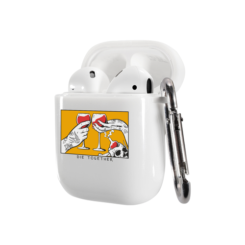 Силиконовый чехол Mcover для беспроводных наушников AirPods 1/2, с карабином, глянцевый, Die together