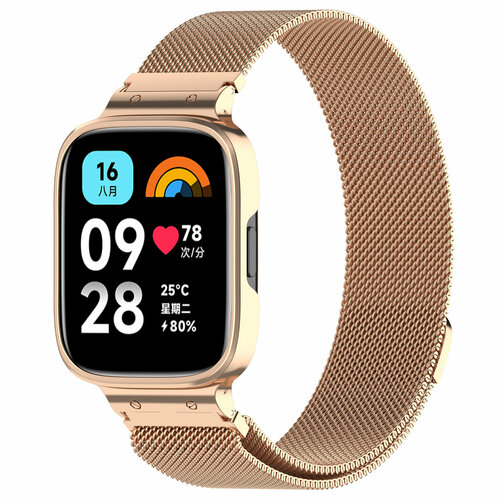Ремешок миланская петля для Redmi Watch 3 Lite, Watch 3 Active, розовое золото