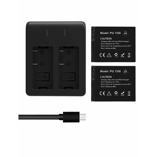 Аккумуляторные батареи для экшн-камеры AKASO Brave 7, 2x1350 мАч с двойным зарядным устройством USB