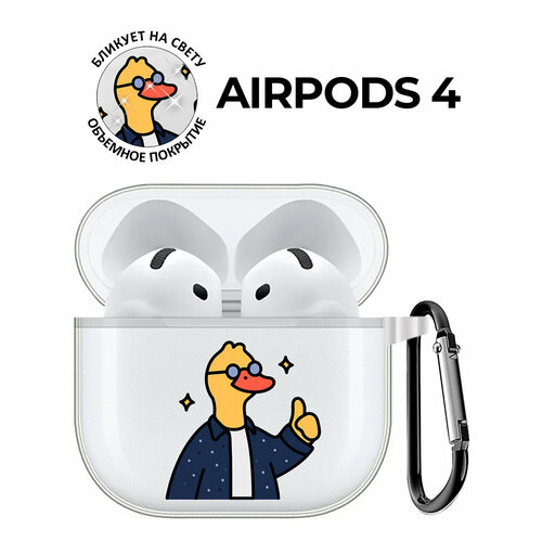 Чехол на Apple AirPods 4 с принтом "Утка-энтузиаст" прозрачный