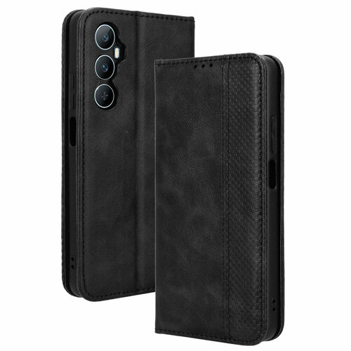 Чехол книжка для Realme C65 с магнитом и отделением под карты / Реалми С65 (черная)