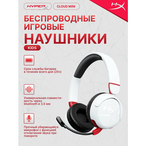Гарнитура игровая HyperX Cloud Mini беспроводная, белая, для ПК и консолей (7G8F2AA)
