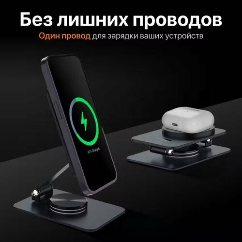 Магнитная беспроводная зарядка для iPhone складная, док станция для Айфон, AirPods, Apple Watch