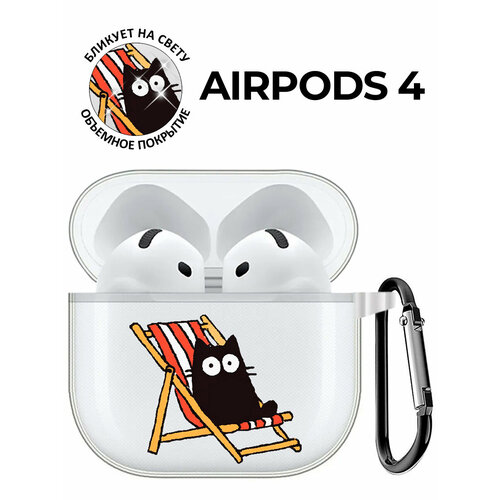 Чехол на Apple AirPods 4 с принтом "Кошачий отпуск" прозрачный