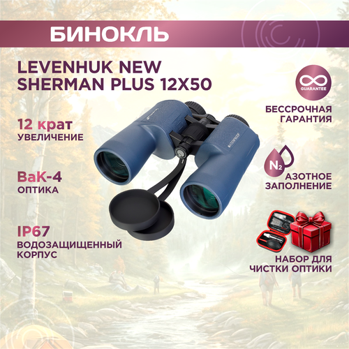 Бинокль Levenhuk New Sherman PLUS 12x50, материал оптики - BAK-4, Porro призмы, корпус алюминий, металл, резина