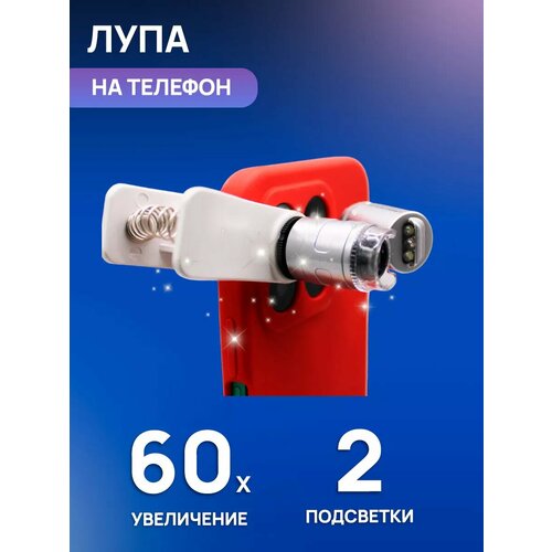 Микроскоп для смартфона, подсветка, круглая линза, на прищепке, 80-кратное увеличение