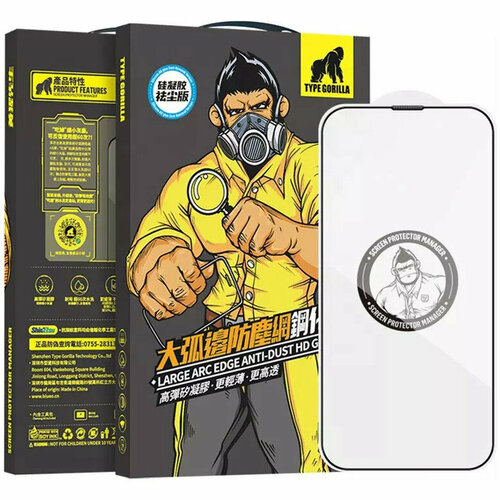 BlueO стекло для iPhone 15/14 Pro Large arc Anti-Dust Anti-Static Black (3D-эфф. с защ. сеткой)