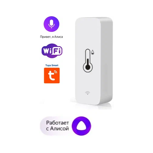 Датчик температуры и влажности ELDEV, беспроводной, IP20, Wi-Fi, работает с Алисой!