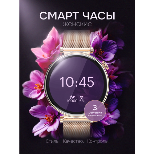 Смарт часы женские круглые Besttime, умные часы наручные с функцией звонка для iOS и Android, водонепроницаемые