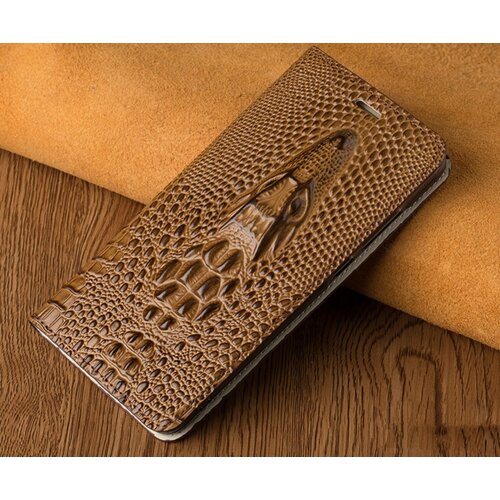 Чехол-книжка MyPads Premium для Honor Magic6 Pro из натуральной кожи, с объёмным 3D рельефом головы, кожи крокодила, роскошный эксклюзивный, светло.