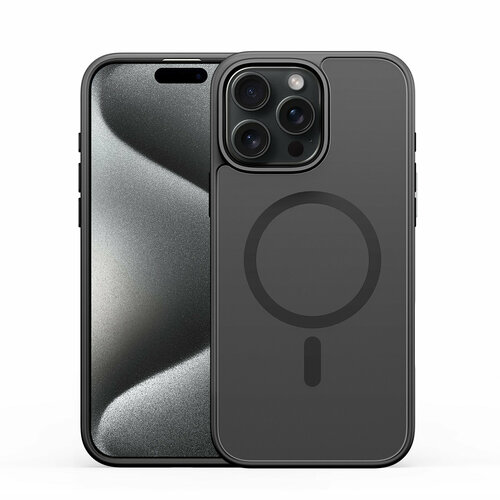 Прозрачный матовый чехол с черными рамками и с MagSafe от Dux Ducis для iPhone 15 Pro, серия Yind Series Case