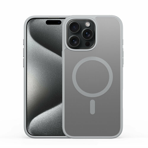Прозрачный матовый чехол с серыми рамками и с MagSafe от Dux Ducis для iPhone 15 Pro, серия Yind Series Case