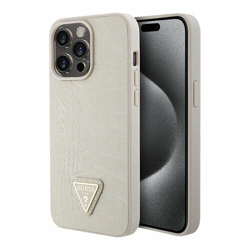 Guess для iPhone 15 Pro Max чехол PU Croco Triangle metal logo Hard Gold