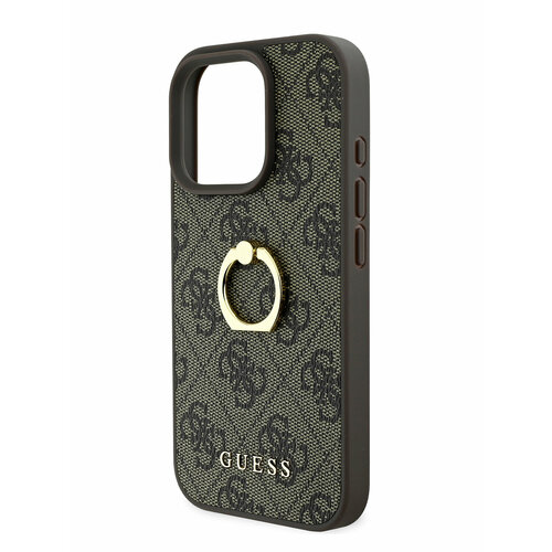 Guess для iPhone 16 Pro Max чехол PU 4G + Ring Hard Brown