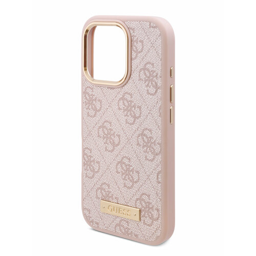 Guess для iPhone 16 Pro чехол PU 4G Plate metal logo Hard Pink (MagSafe)