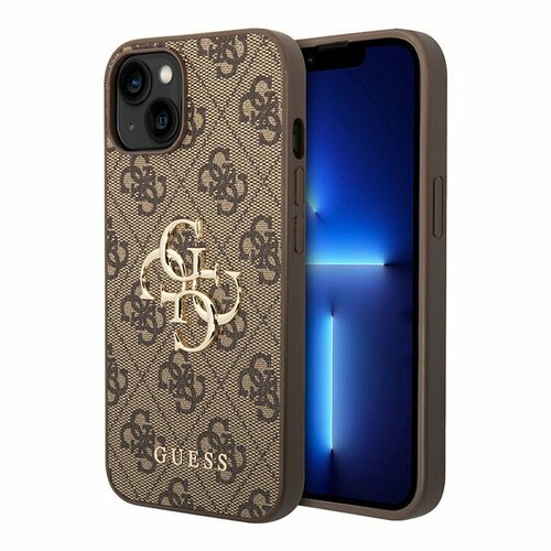 Guess для iPhone 15 чехол из кожи PU с узором 4G и Big metal logo