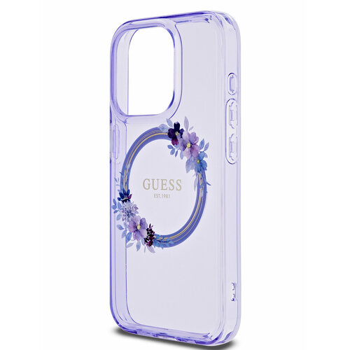 Guess для iPhone 15 Pro чехол PC/TPU Flowers Wreath Hard Purple (MagSafe)