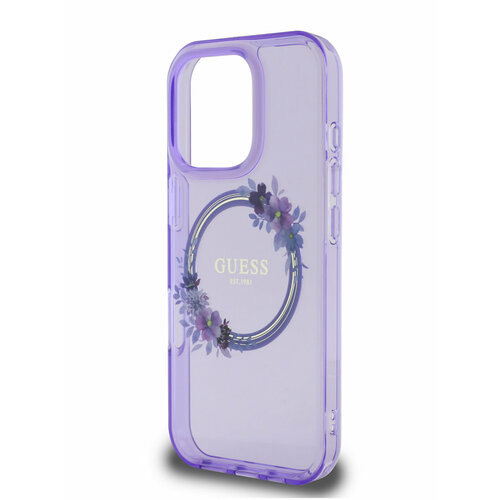 Guess для iPhone 16 Pro Max чехол PC/TPU Flowers Wreath Hard Purple (MagSafe)