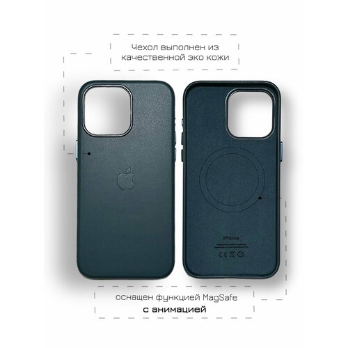 Чехол кожаный для iPhone 13 Pro, Leather Case, с поддержкой беспроводной зарядки, цвет океанский