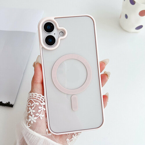 Силиконовый прозрачный чехол с MagSafe для Iphone 16 / Айфон 16 (Pink/Розовый)