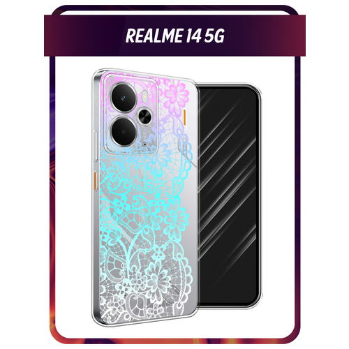 Чехол на Realme 14 5G / Реалми 14 5G с принтом Радужный кружевной узор, прозрачный