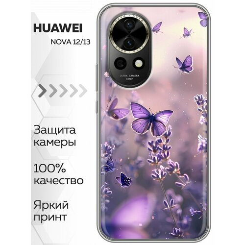 Чехол для Huawei Nova 12, Huawei Nova 13 с принтом бабочки и лаванда (Хуавей Нова 12, Хуавей Нова 13)