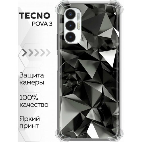 Чехол для Tecno Pova 3 с принтом черные кристаллы (Техно Пова 3)