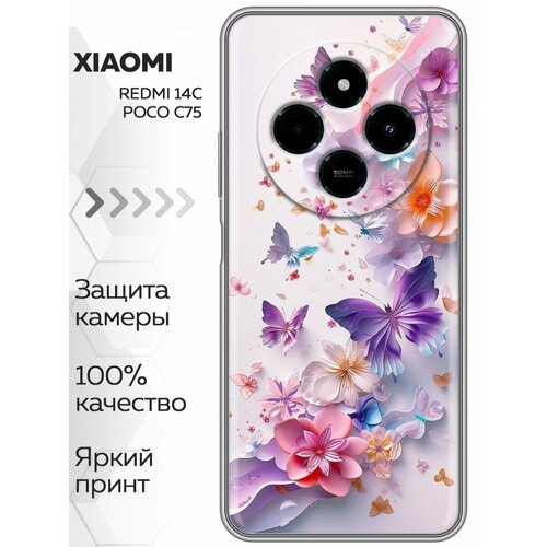 Чехол для Xiaomi Redmi 14C 4g, Poco C75 с принтом Красивые бабочки (Ксиоми Редми 14С 4g, Поко С75)