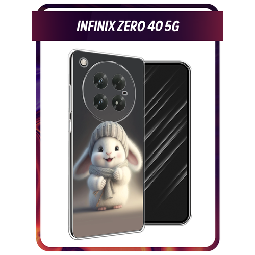 Чехол на Infinix Zero 40 5G / Инфиникс Зеро 40 5G с принтом Белый крольчонок в шапке