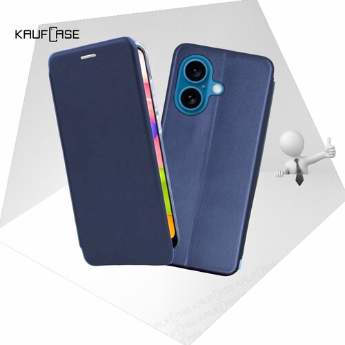 Чехол книжка для телефона Apple iPhone 16 (6.1"), темно-синий. Текстура под кожу