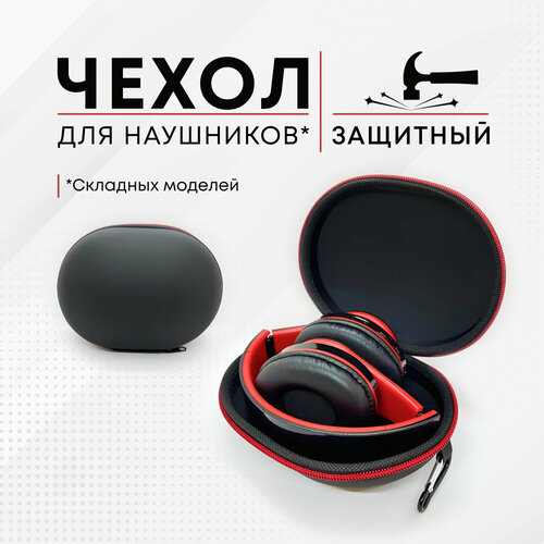 Чехол футляр сумка для накладных больших складных наушников/черный-красный