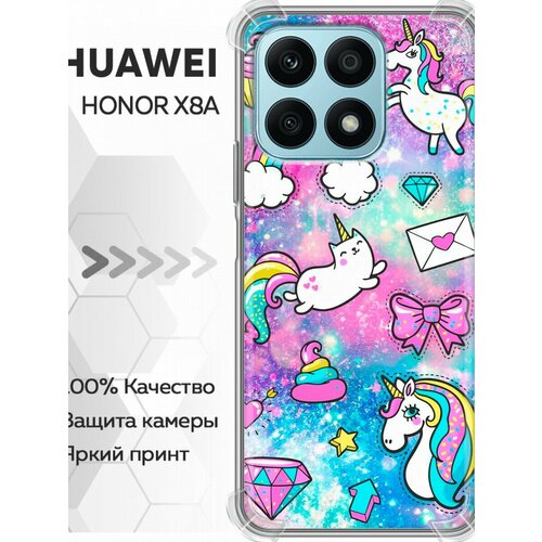 Дизайнерский силиконовый с усиленными углами чехол для Хонор Х8а / Huawei Honor X8a Единороги