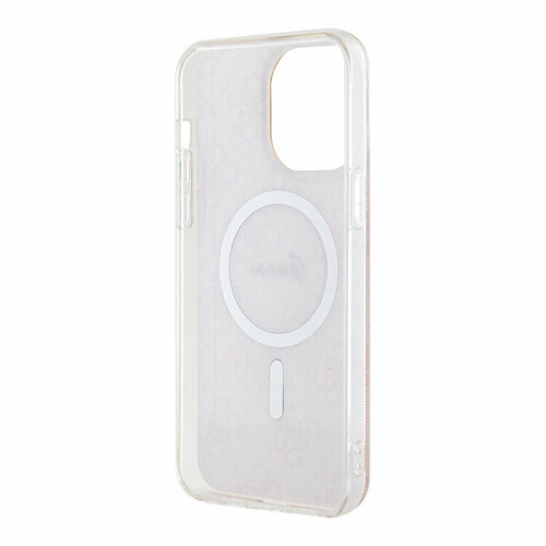 Guess чехол для iPhone 15 Pro, PC/TPU с принтом 4G розовый/золотистый (MagSafe)