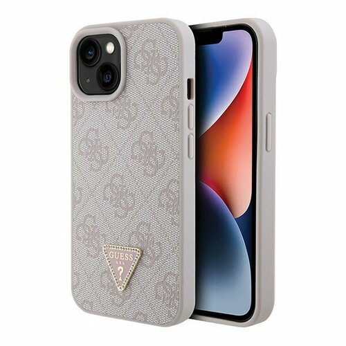 Guess для iPhone 15 чехол PU 4G Triangle Diamond metal logo Hard Pink