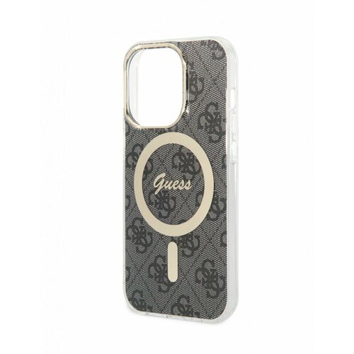 Guess для iPhone 16 Pro чехол PU 4G Plate metal logo Hard Brown (MagSafe)
