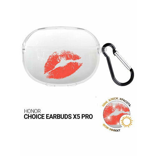 Чехол на Honor Choice Earbuds X5 Pro с принтом "Поцелуй" прозрачный