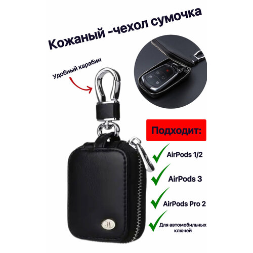 Кожаный чехол-сумочка для Airpods 1/2/3/Pro 2(черная)
