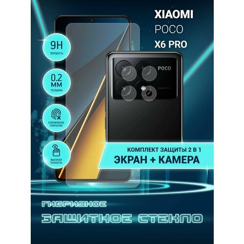 Защитное стекло для Xiaomi POCO X6 Pro 5G на экран и камеру, гибридное (пленка + стекловолокно), Crystal boost